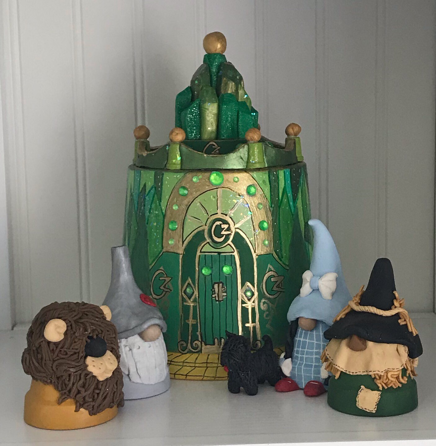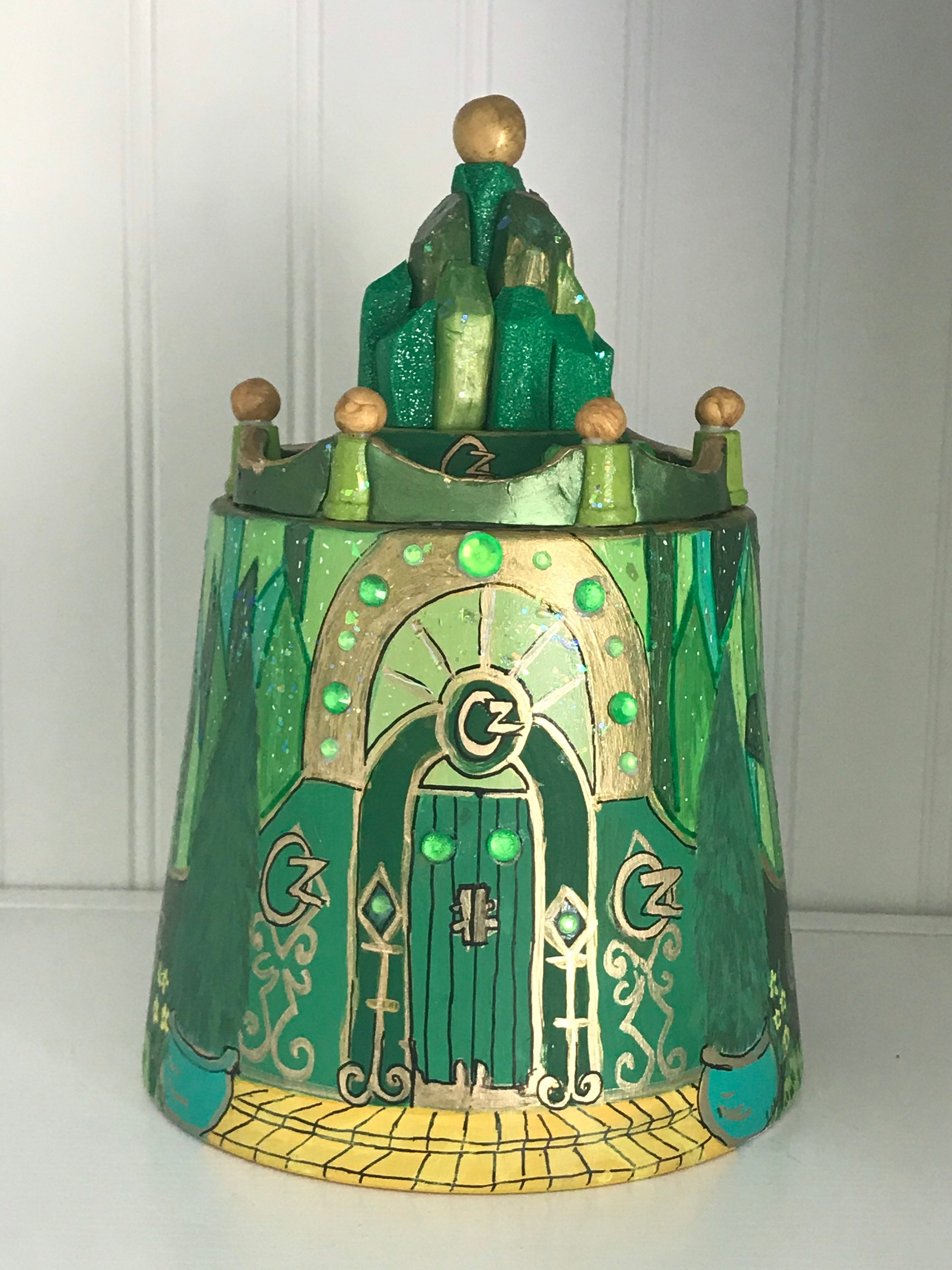 The Emerald City FairyPot is whimsical and in. It is sure to be the perfect accent for your fairy garden. Use it with the Wizard of Oz collection and Dorothys house.