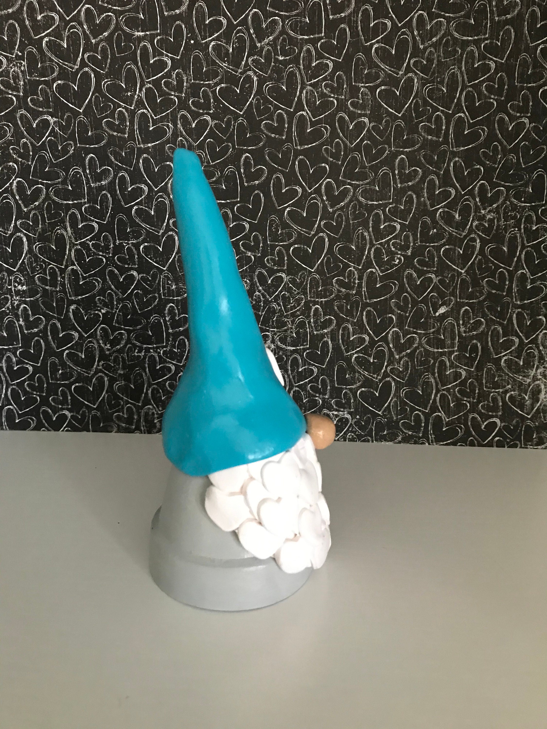 This bright colored little gnome with a heart on the hat is handmade out of miniature flower pots and polymer clay. These little gnomes are whimsical and available as male or female. You also have a choice of skin tones. They are just delightful. Each one is waiting for the right home to bring love and positive energy into your life.