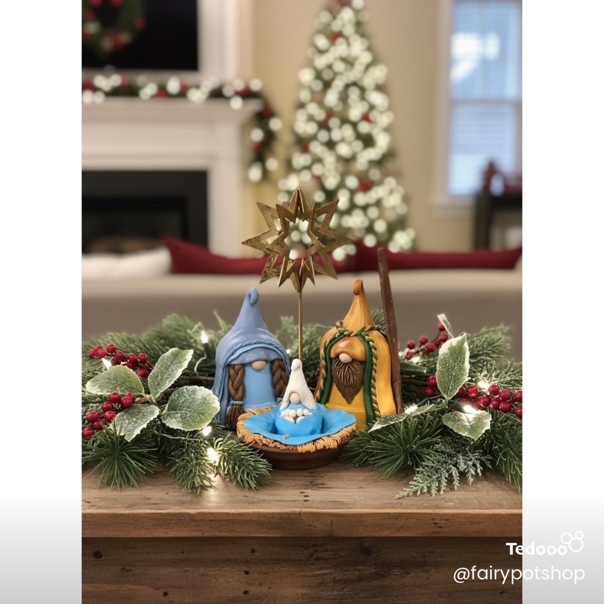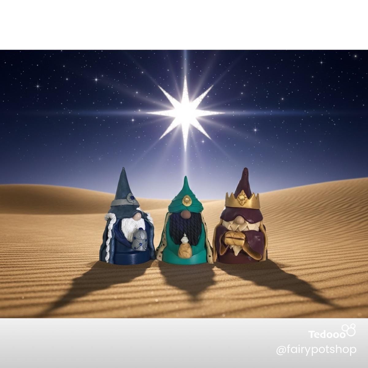 Gnome Nativity 2025. Gnomes enjoy celebrating the birth of Christ as much as anyone. And this little set of them will bring you delight as you celebrate this Christmas. This set is offered at a special discount at $175.00 and free shipping.